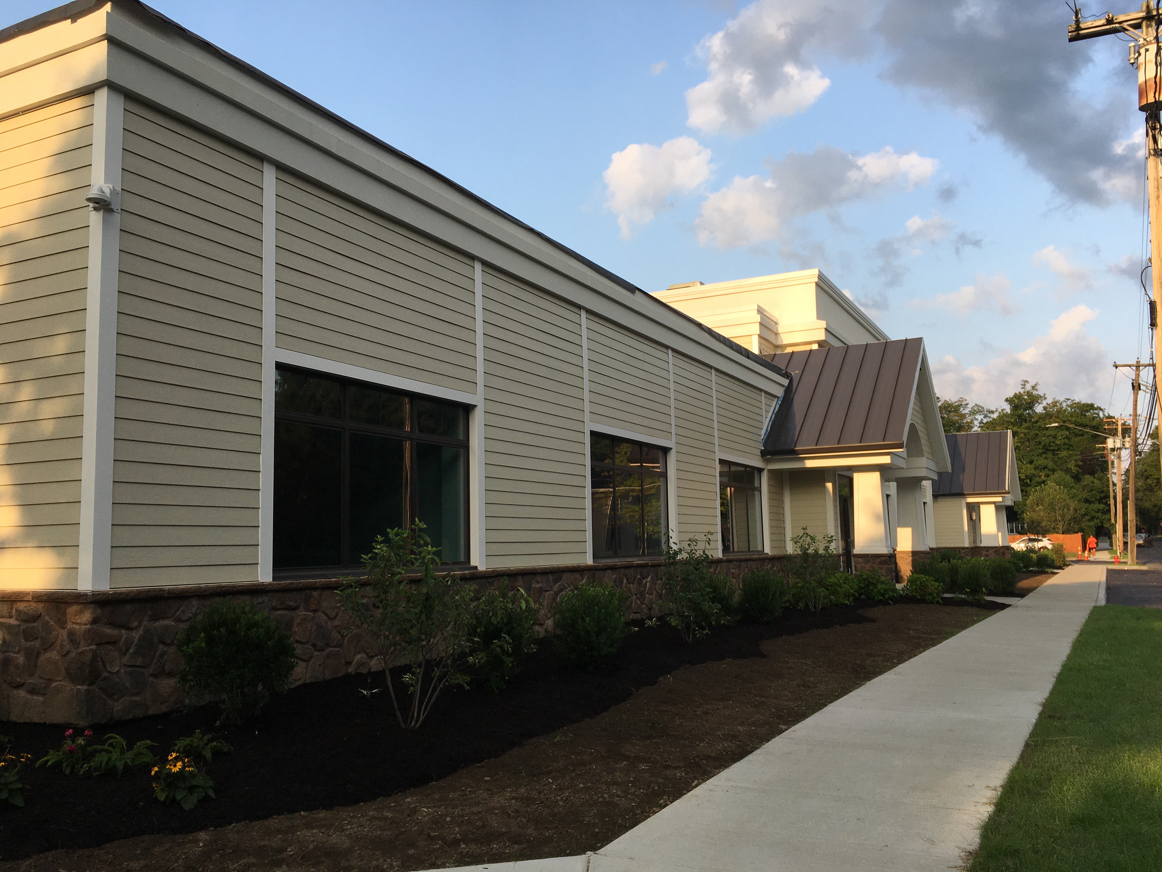The building ultimately houses 7 different departments with individual offices and reception areas for the public, along with shared amenity spaces and public meeting rooms. Of these spaces, the focal is the 2,043 sq. ft. meeting room that will host the Town and Village Board meetings, along with public gatherings and seminars.