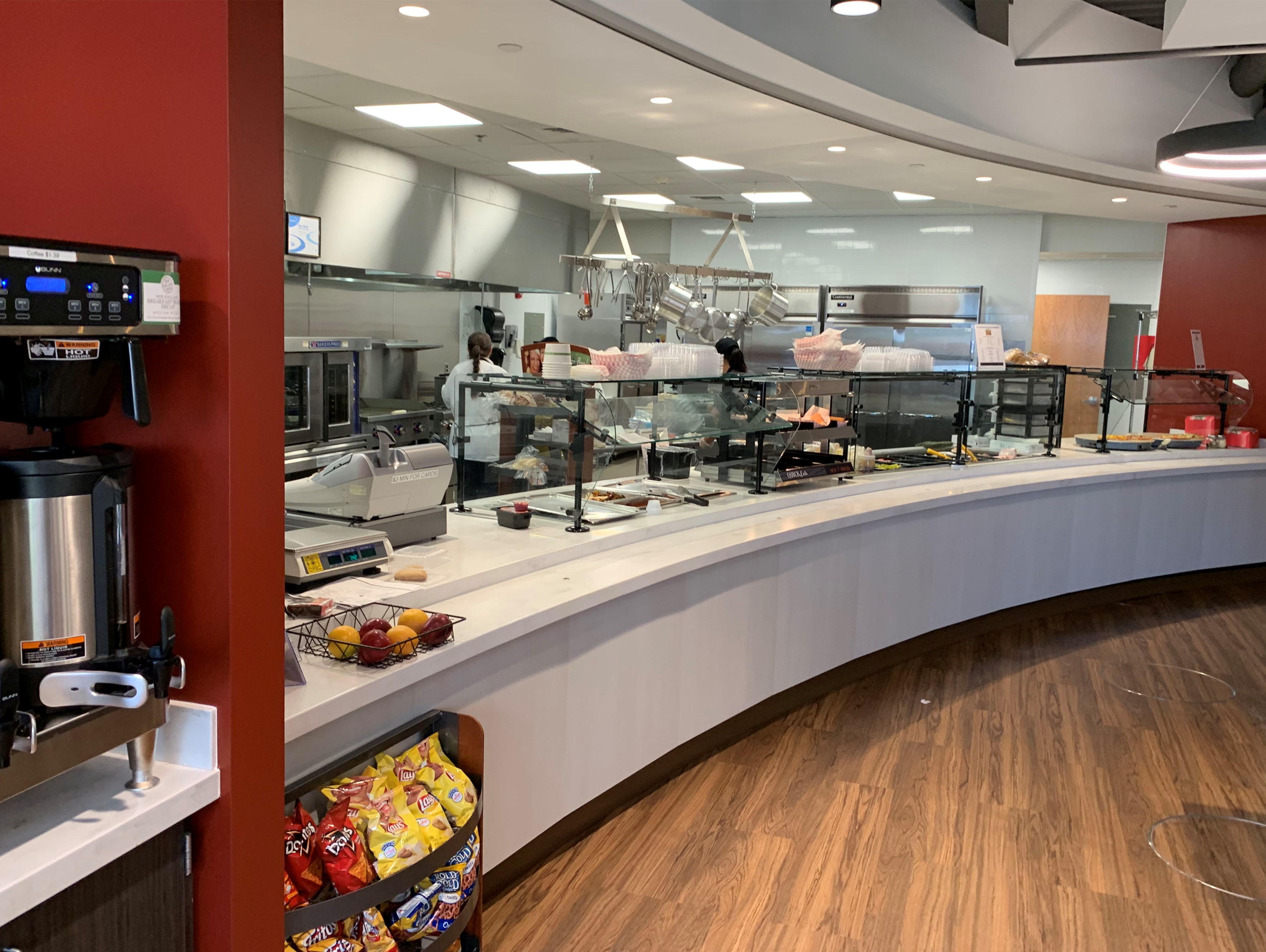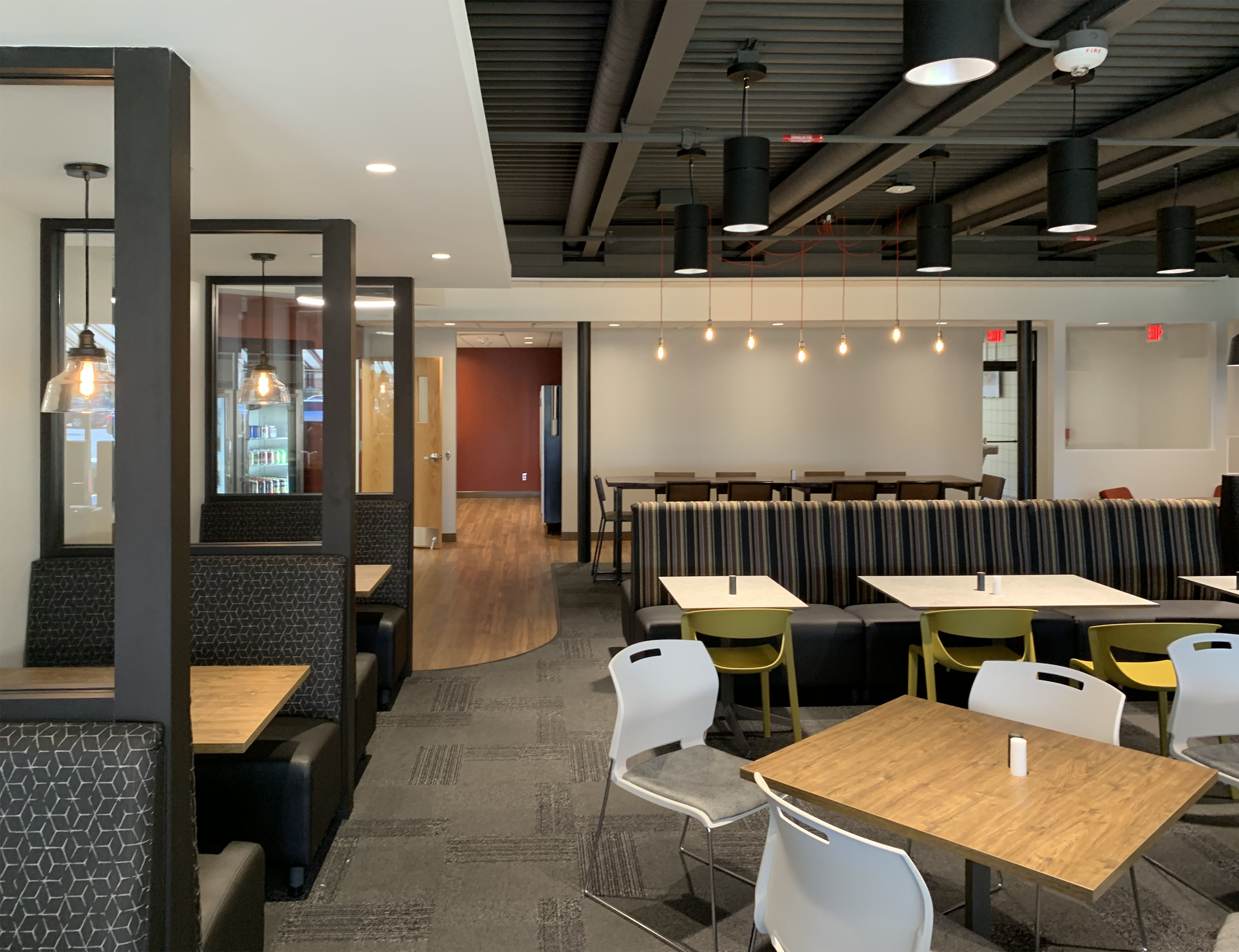 With versitility and flexibility in mind, the cafeteria contains a multitude of seating varieties including banquet, community table, lounge seating, as well as 2 top & 4 top seating. The space also features wireless internet throughout and includes modern power and USB accomodations to allow for small break out meetings.