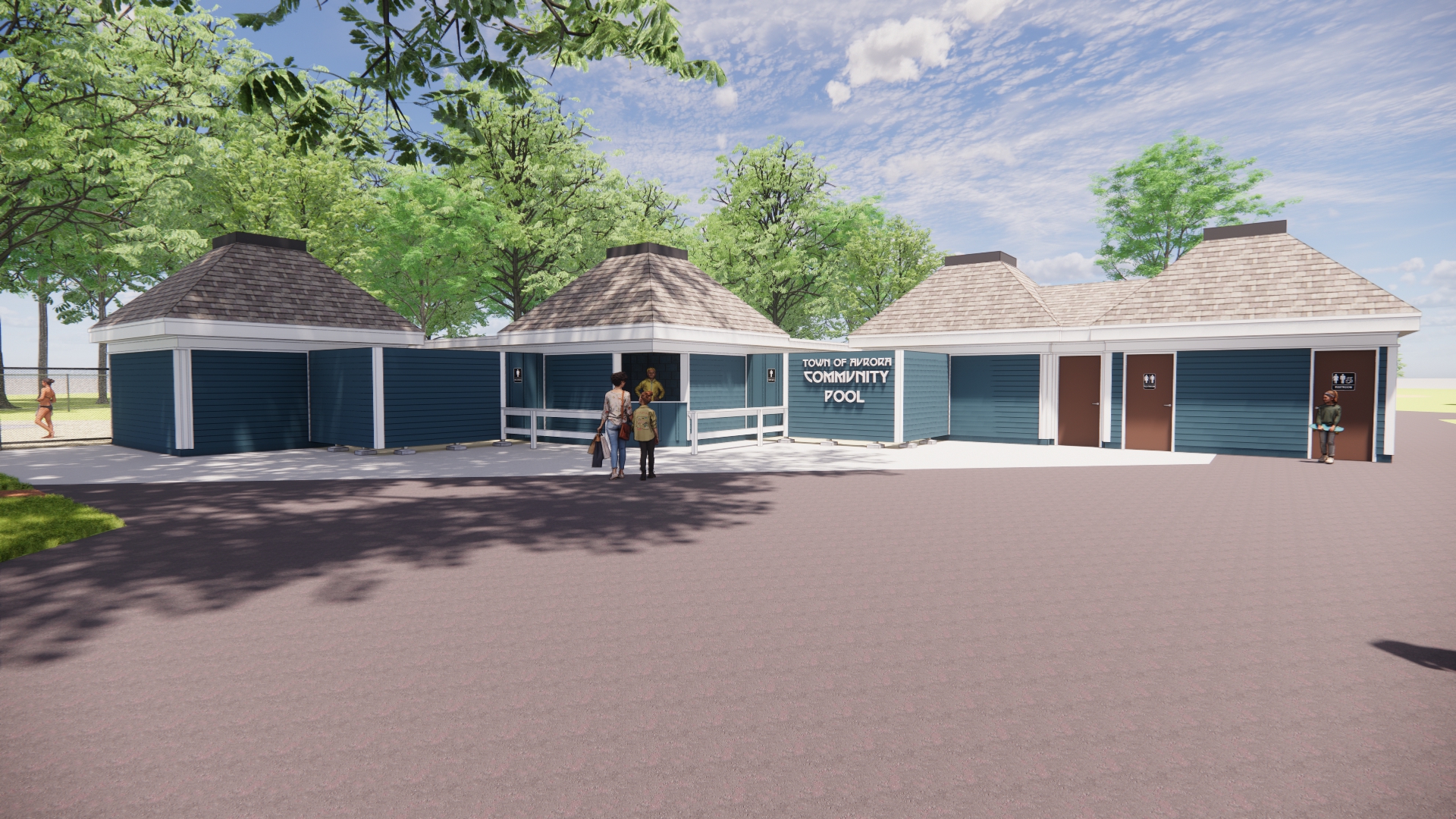 Aurora Community Pool - FFAE assisted the Town of Aurora with evaluating the options for updates and renovations at the community pool. Once an option was selected, FFAE carried the project through construction documents, bidding and construction. The updates included exterior updates, new roofing, complete bathroom and changing room renovations, and mechanical, electrical and plumbing updates.