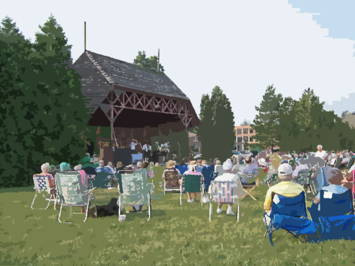 Orchard Park Band Shelter - Constructed on the site of the Orchard Park Middle School, the Quaker Arts Pavilion is the focus of the good-weather activities for the town of Orchard Park. The pavilion was desired to provide a flexible and protected shelter for a variety of events (band and orchestra concerts, fireworks celebrations, etc).