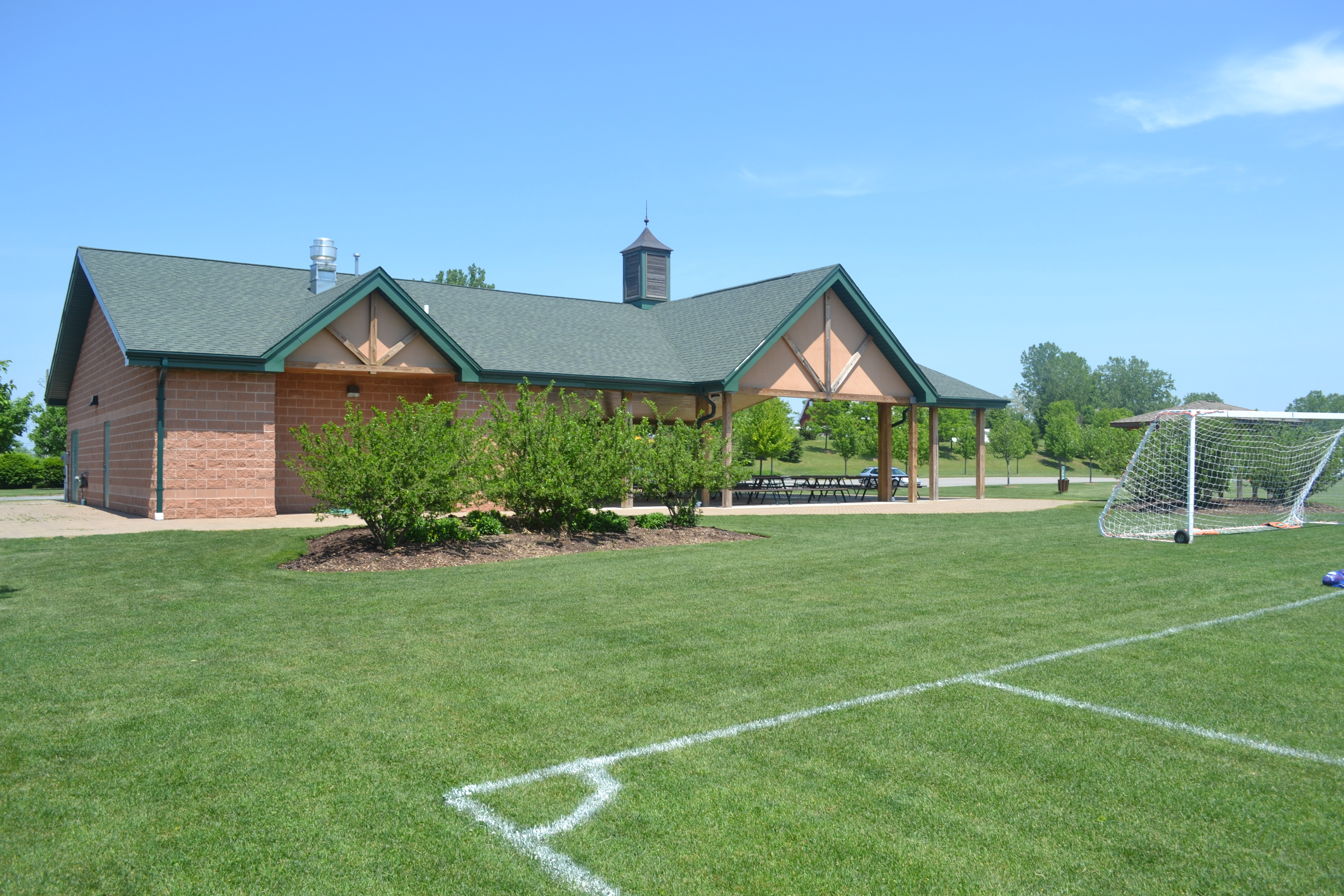 Orchard Park Town Park - This pavilion provides shelter and bathroom facilities for sporting events and social gatherings at this Town of Orchard Park recreational facility.