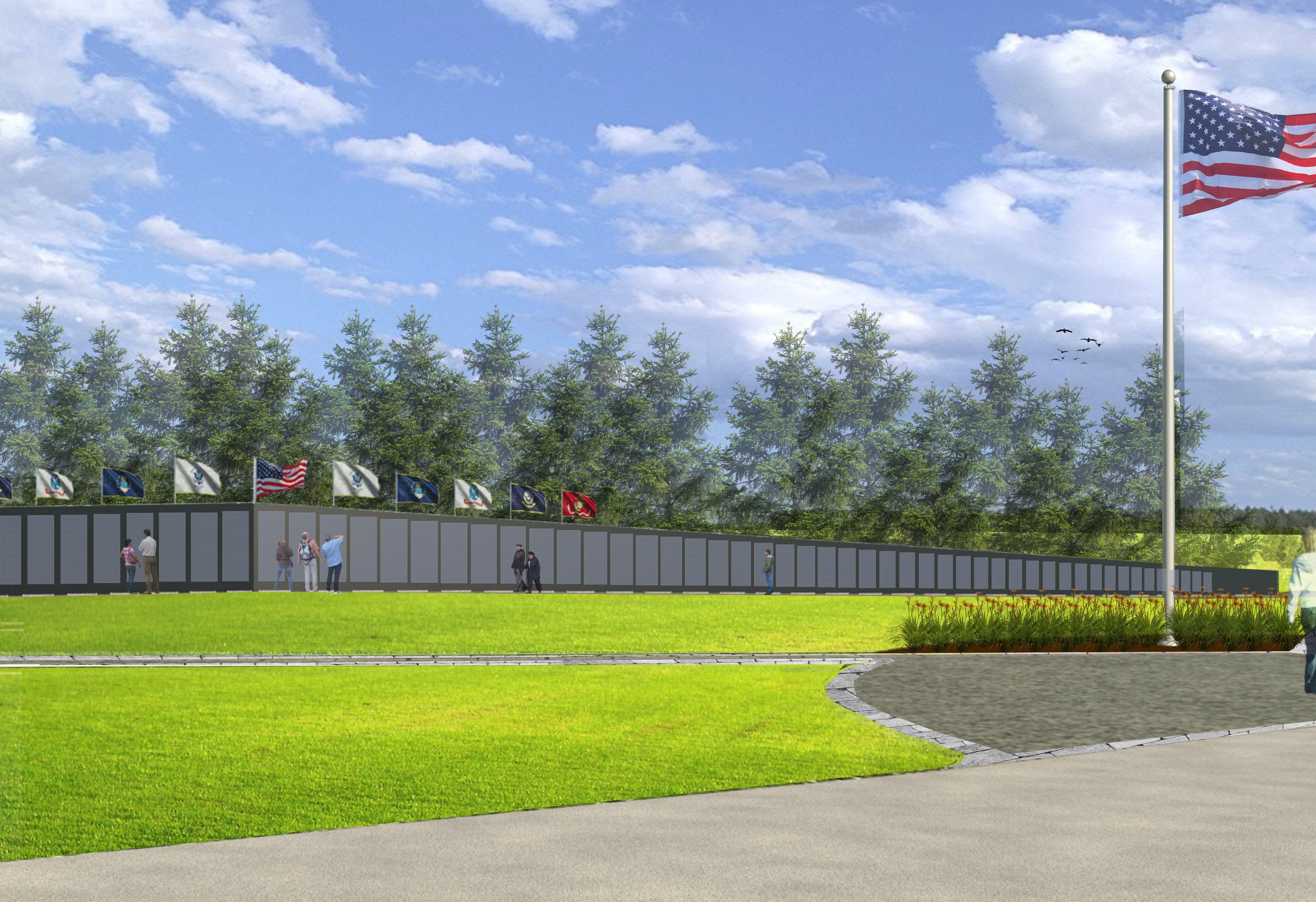 Vietnam Memorial - FFAE has been assisting the committee of various local Veteran groups to find a site to permanently display a replica of The Vietnam Veterans Memorial Wall. The Wall will be designed to be integral to the overall composition of the landscape and will include monuments to each conflict as well as special tributes to each branch of service.