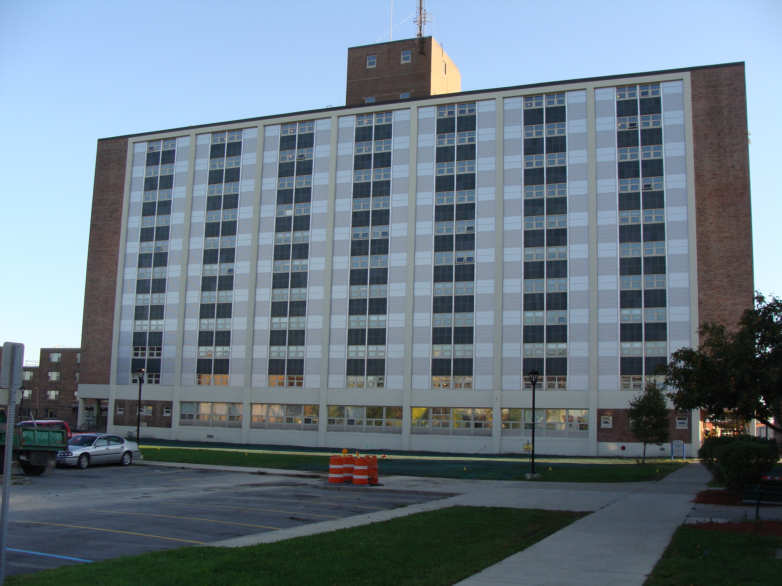 FFAE Architects was engaged to provide complete Architectural Design Services for a comprehensive forensic evaluation, rehabilitation and modernization of Kimball Hall; an existing 12-story high rise tower located at the University of Buffalo’s south campus. Built in 1950, the existing building is a blending of exterior envelope materials. The structure is composed of a poured-in-place concrete frame with brick veneer, terra cotta panels and aluminum curtain wall systems.