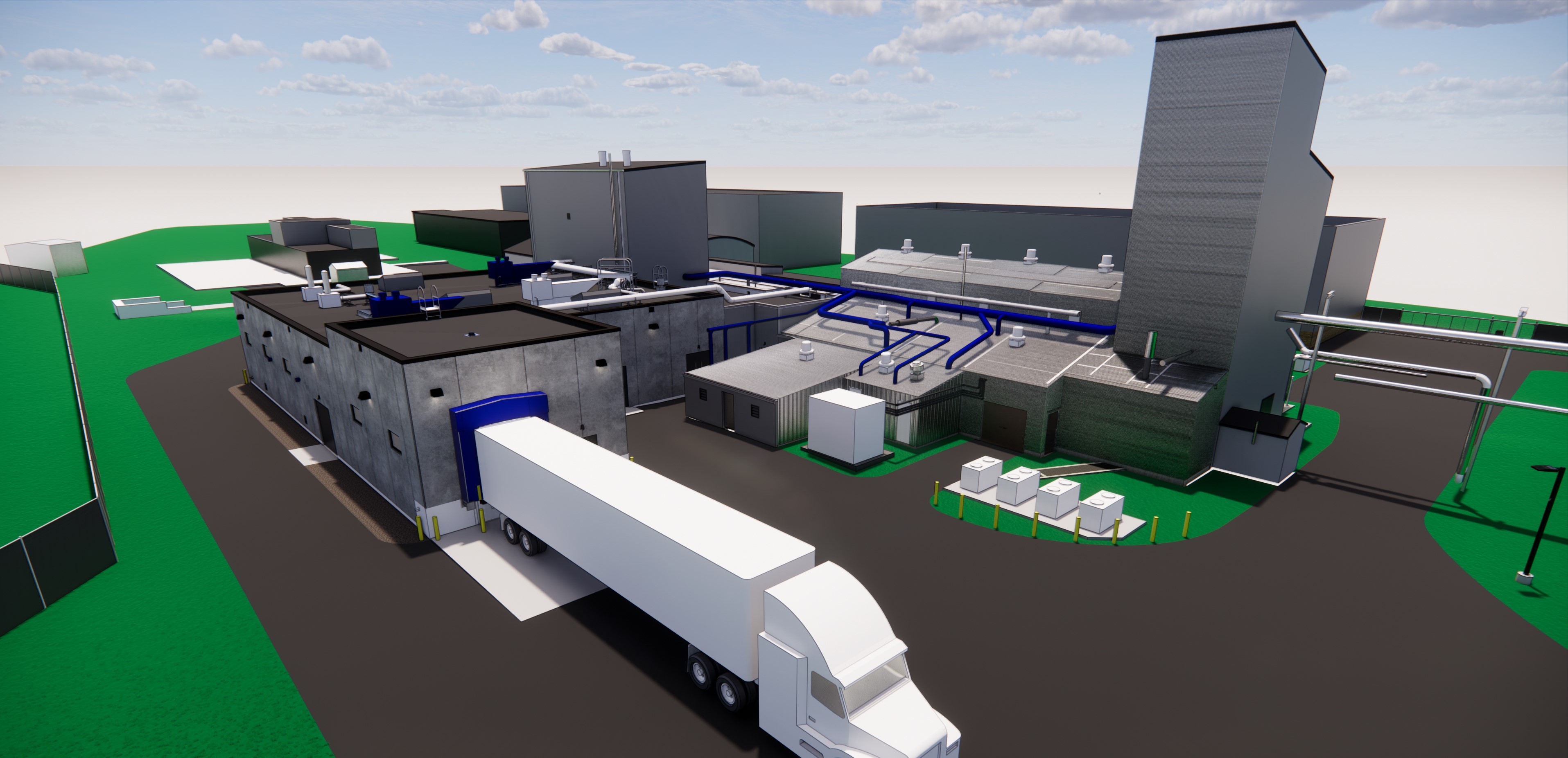 The proposed building features insulated pre-cast concrete wall panels and concrete hollow core roof planks which provide a robust, yet relatively quickly eractable building shell. The interior of the building integrates a series of spill containment & fire suppression water containment trenches and metal grating systems that complies with code requirements for hazardous material storage.
