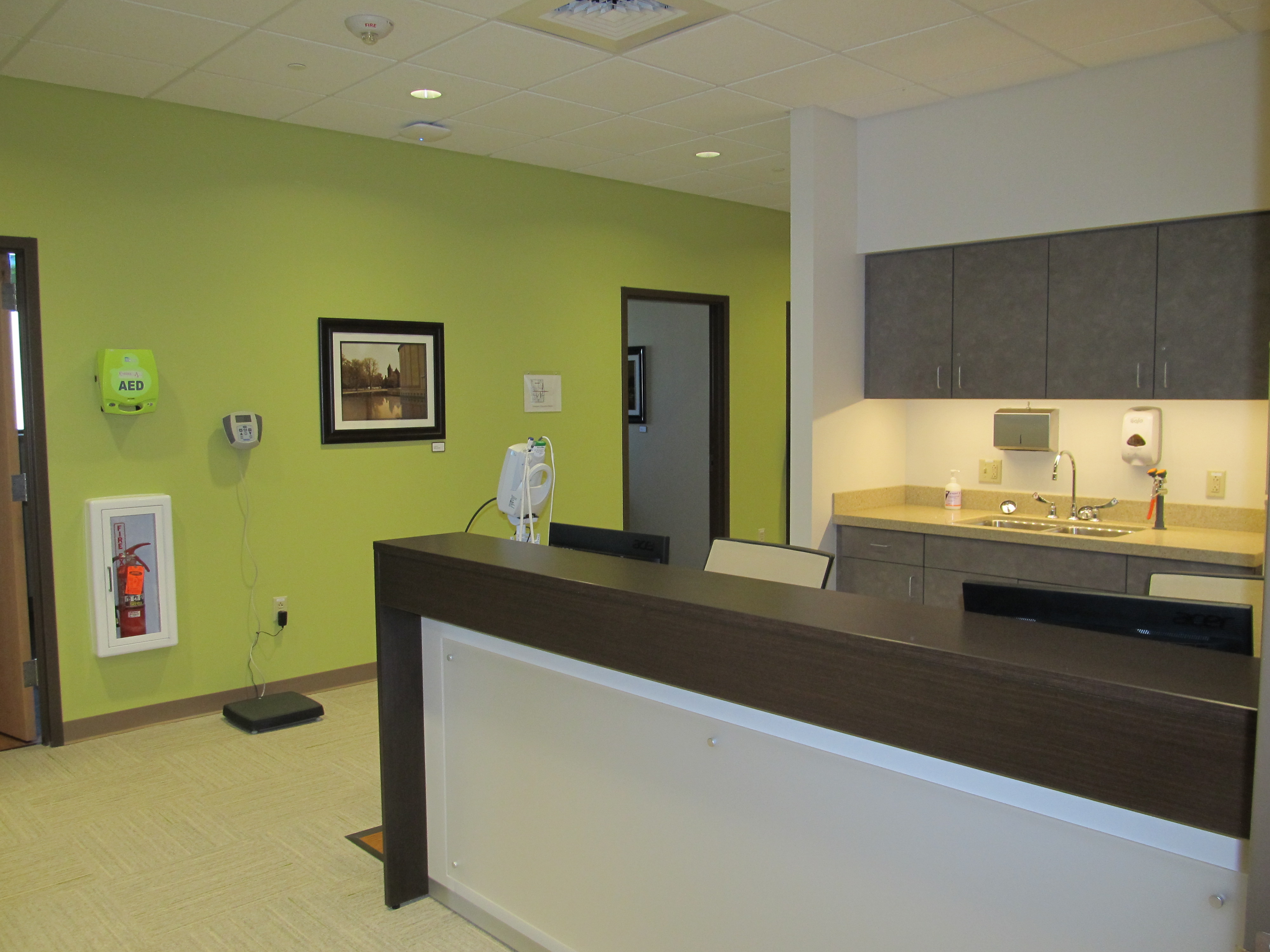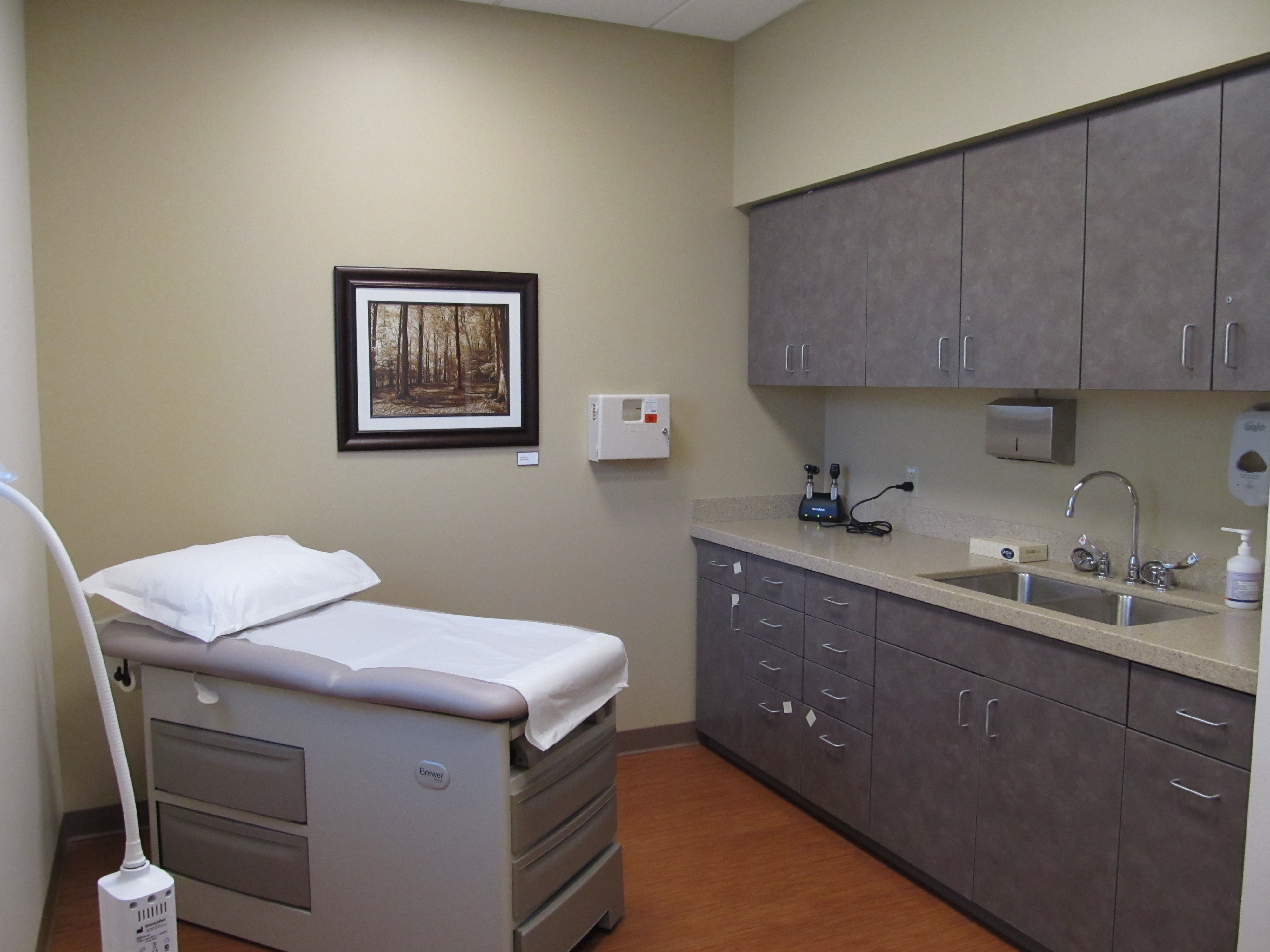 The center consists of five exam rooms including one for pediatrics, multi-functioning lab and a physical therapy suite with P.T. exam rooms and workout center. The center is also supported by health coaching offices, nurse and doctor support facilities and a welcoming reception area.