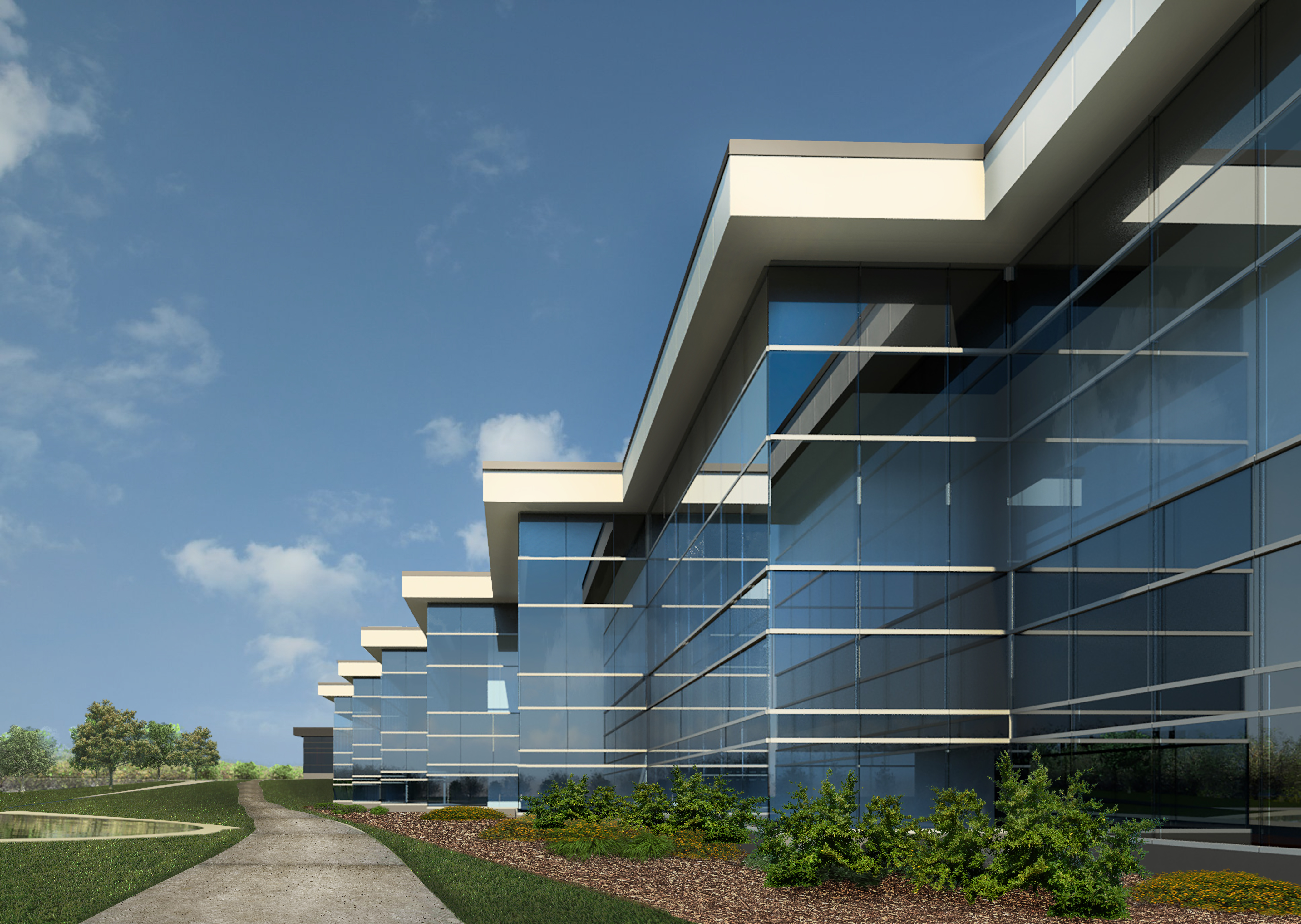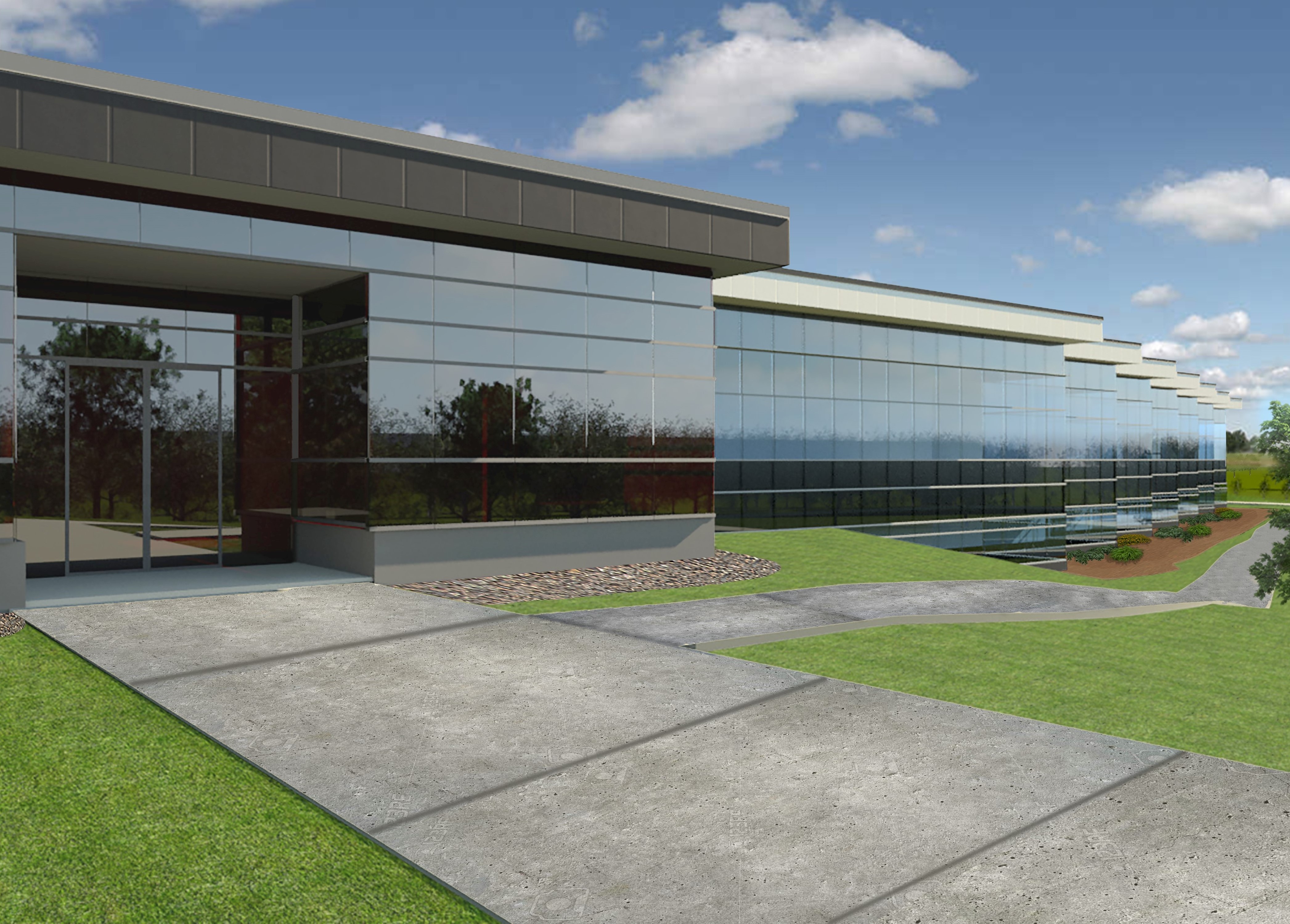 The exterior facade is a two-story aluminum and glass curtain wall construction with a metal panel cornice/soffit system. Tall interior storefront systems were utilized to separate the A&T functions from the engineering areas, but still allow natural daylighting to penetrate deep into the building footprint. At grade, the perimeter of the addition is surrounded by a rain garden system which is part of campus wide improvements to the storm water drainage system.