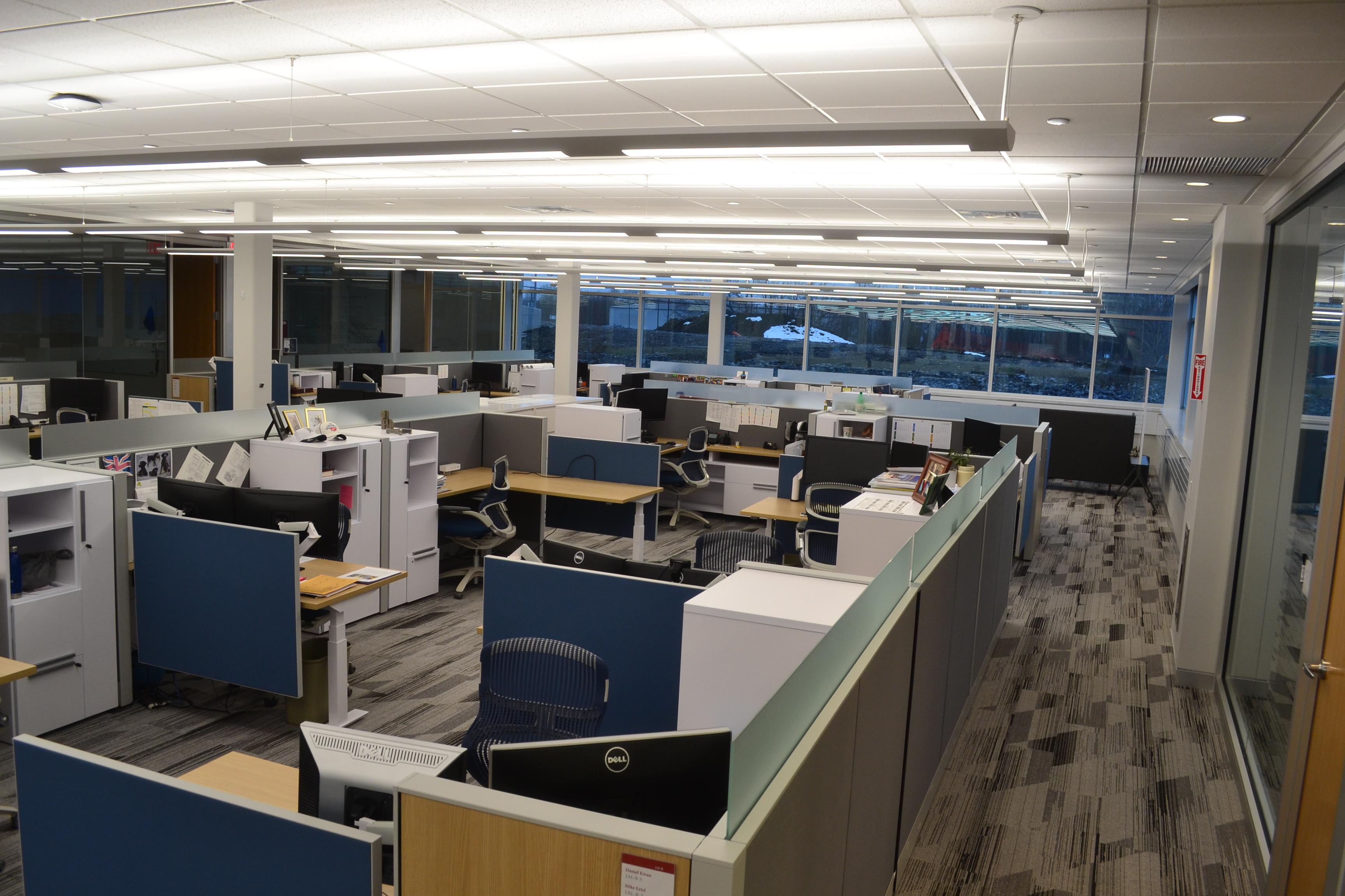 The addition provided 28,400 s.f. of office space for various departments and 63,200 s.f. of assembly and test space. Directly adjacent to this space is 7,300 s.f. open office space for engineering design teams that support the A&T functions. In addition to numerous break-out areas and huddle rooms, a conference suite on both levels provides flexible meeting space.