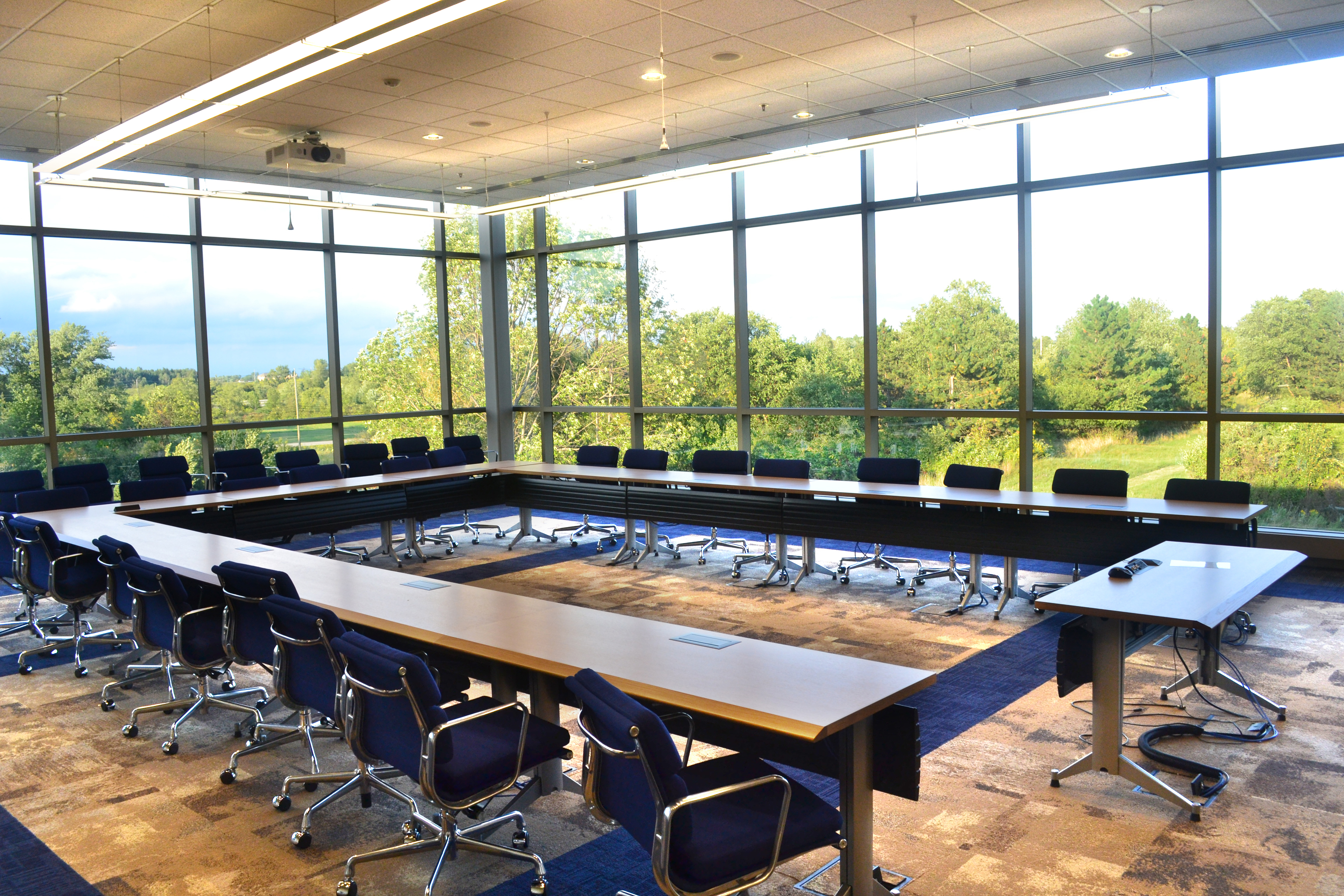 The two-storied main entry link provides a pleasant welcome, easy access, and a soft separation of the conference suite, and the training, meeting and cafeteria spaces from the offices on each floor. Integral to the design was FFAE’s master planning that preceded it, as the building’s size, orientation, vernacular and modulus was developed to fit in and compliment the existing campus infrastructure as well as support its future growth.