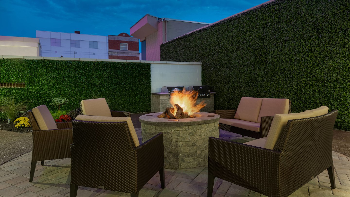 The renovations of the existing 8-story cast-in-place concrete building resulted in a 105-suite hotel with a plethora of support amenities, including a lobby, offices, meeting room, laundry, and dining/food preparation, as well as a fitness center and an indoor pool. Improvements to the site were also incorporated, through the implementation of new parking, walkways, and landscaping. An outdoor fire pit is set within a courtyard area, and is set back from the street, allowing guests to utilize these amenities while still maintaining a sense of privacy. A Starbucks is also included on the ground floor level, with a direct entry connection through the hotel lobby, as well as from the exterior off of the adjacent street.