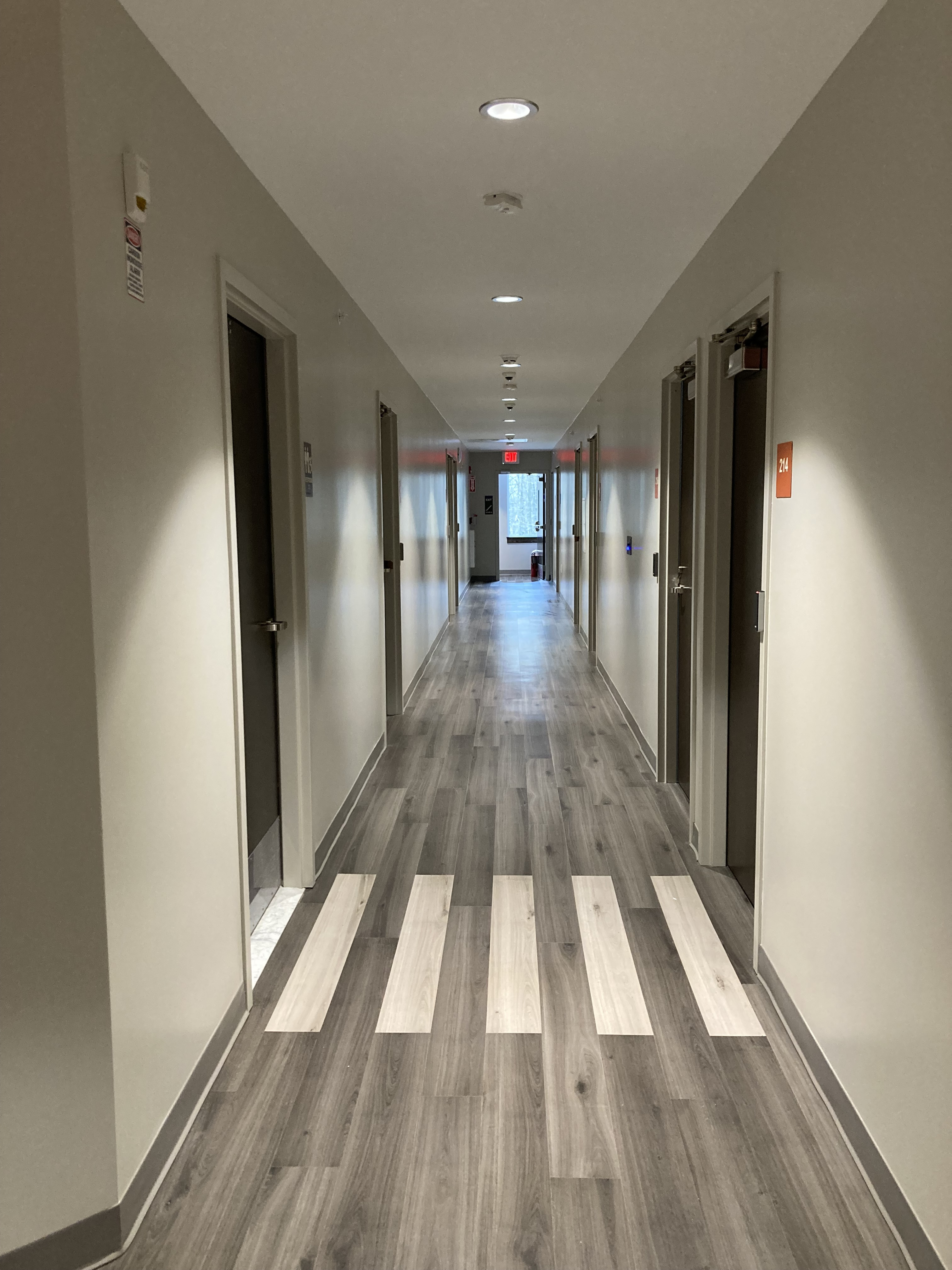 This new Turning Point Residence is a 30 Bed Residential Treatement Facility which replaced the existing that once resided on the same lot. This 16,300 s.f. facility contains bedrooms for 30 beds, counseling and support spaces, recreational areas, dining facilities, and staff offices. The serene and wooded setting aids to continue the recovery process from dependency on drugs and alcohol.
