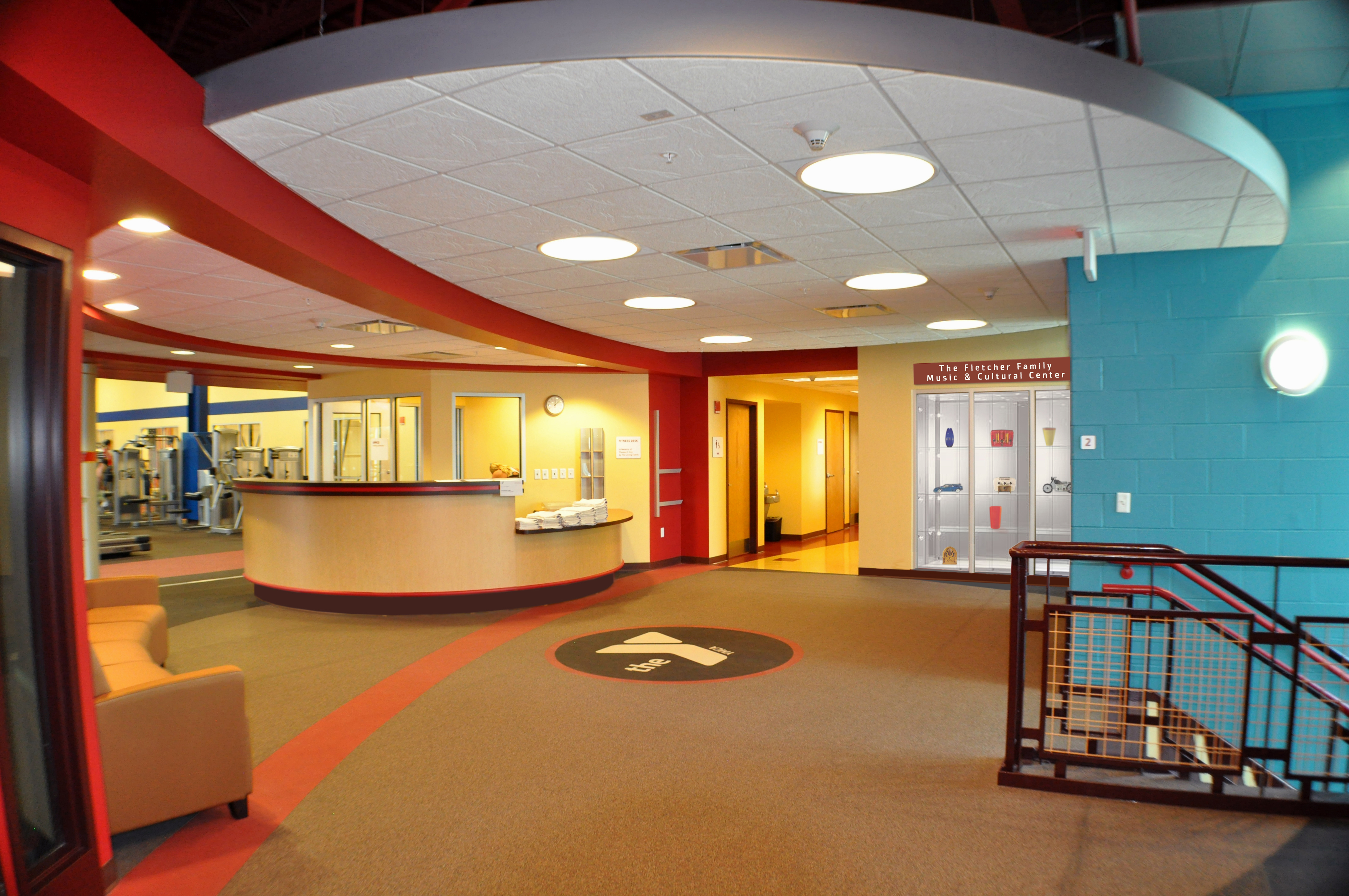 Particular to this YMCA’s design is the inclusion of the Fletcher Family Music and Art Center. It offers an art studio and a music studio complete with four individual practice rooms. To support and accommodate the display of the center’s creative products, the second floor elevator lobby is designed to provide ample display possibilities for the Center as well as allowing open, ease of access and circulation throughout the second fl oors amenities.